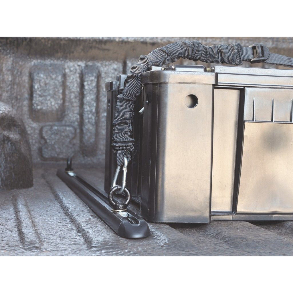 A Front Runner Cargo Rail that can be fitted to a variety of flat surfaces to create latching and securing points. This Cargo Rail is supplied with (2) two movable eye nuts which are secured onto the rail by turning.